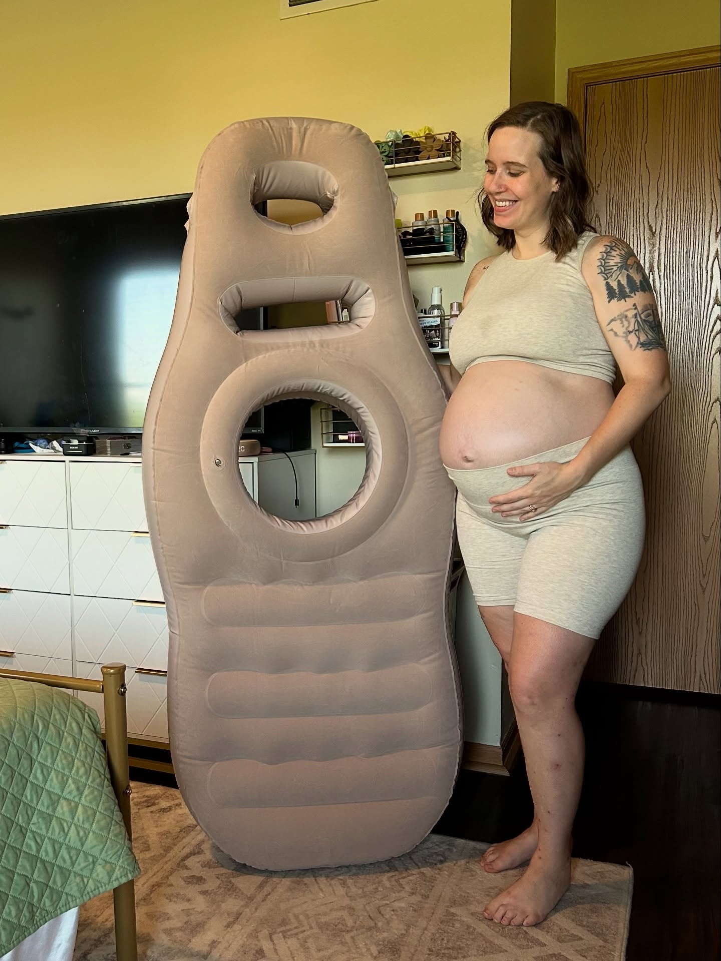 הפתחים הייעודיים נותנים מקום לבטן ולחזה, והמשטח הרך תומך בלי “ללחוץ”.עשוי מחומרים איכותיים ונעימים למגע, קל לניפוח ולקיפול, וניקוי מהיר במטלית לחה.